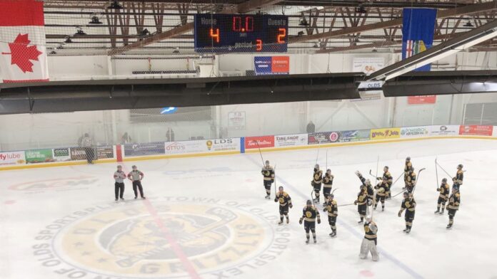 At that stage of the weekend Olds had also climbed within 7 points of the Canucks (21-22-2-1) in the standings as the playoff drive continued. However, the Canucks would beat Drayton Valley 2-1 on Saturday at the Ken Bracko Arena and the Grizzyls fell 6-3 to the Thunder on Sunday afternoon leaving the possibility of postseason action for the first time since 2020 clinging to a thread. With 7 games remaining in the regular season the Black & Gold are 9 points behind the Canucks. Calgary has 9 games left.